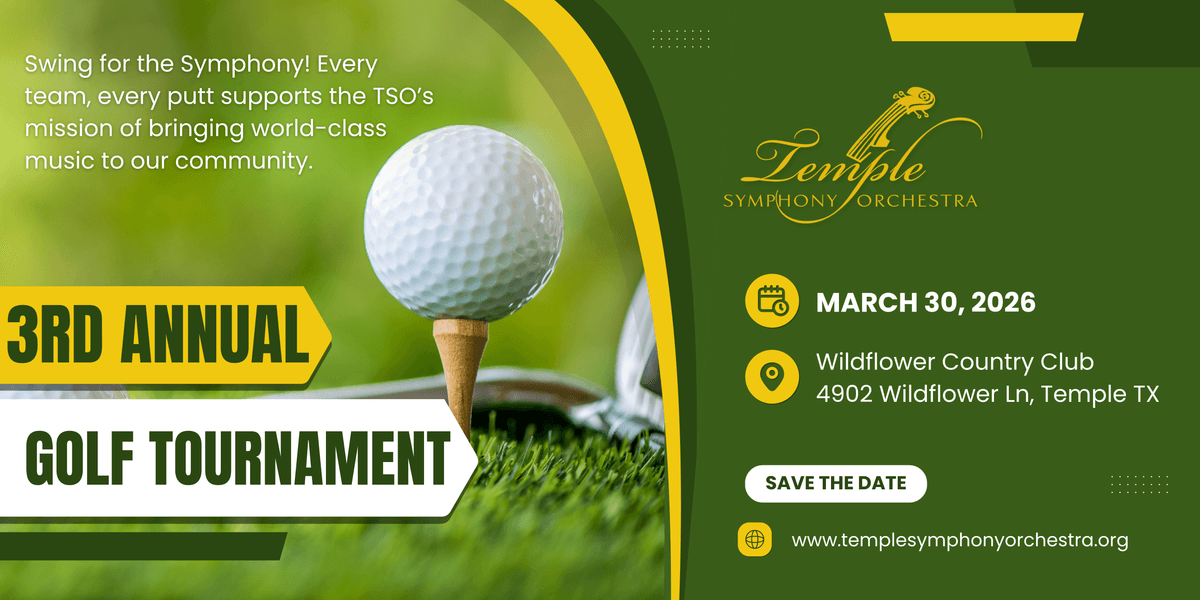 Join us on the greens for the Temple Symphony Orchestra’s 3rd Annual Golf Tournament at Wildflower Country Club on Monday, March 30, 2026!